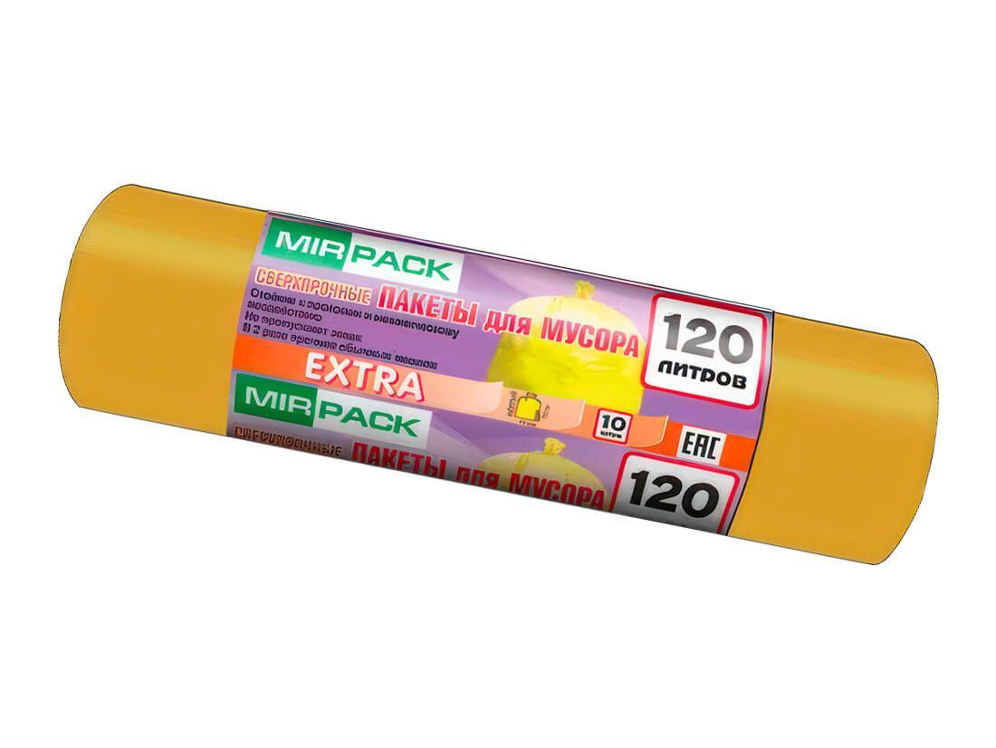 Мешки для мусора 120 л, биоразлагаемые, желтые, в рулоне 10 шт., ПНД, 14 мкм, 1100х700 мм, EXTRA, ex1201806
