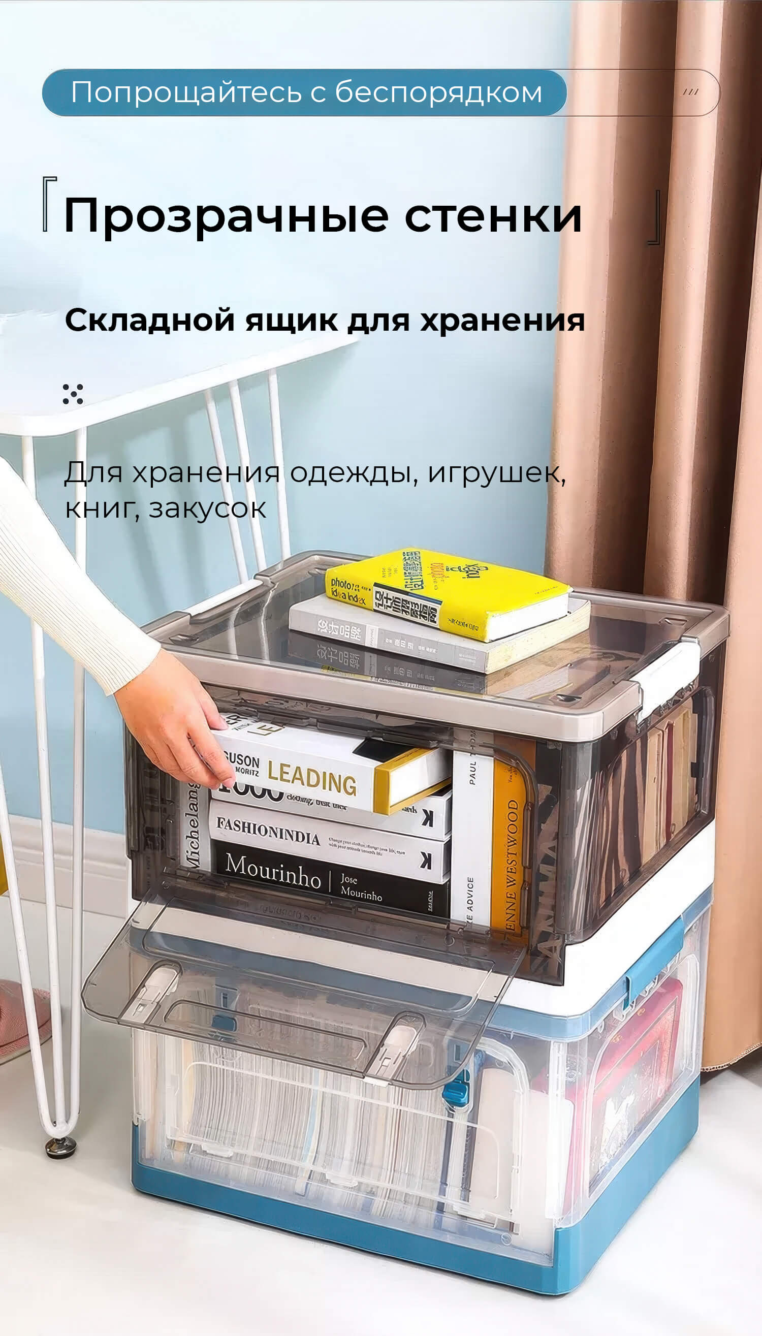 Пластиковая коробка с крышкой надежно защищает вещи от пыли и влаги, сохраняя их в чистоте. Прочная конструкция выдерживает ежедневные нагрузки, а складной механизм позволяет компактно хранить ящик, когда он не используется.