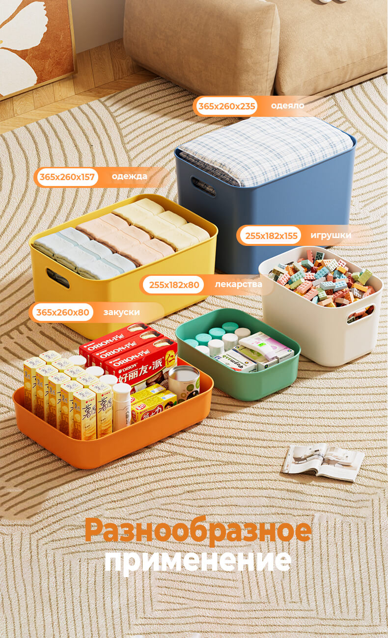 Подходит для хранения игрушек, одежды, документов и различных мелочей. Отличное решение для дома, офиса и склада.