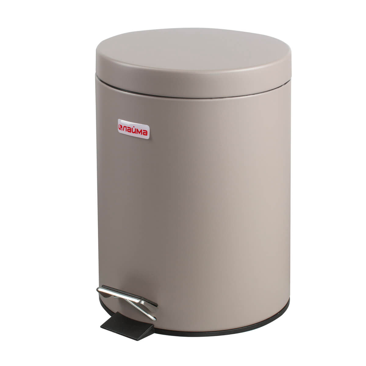 Ведро-контейнер для мусора (урна) с педалью LAIMA Classic, 5 л, серое, матовое, металл, со съемным внутренним ведром