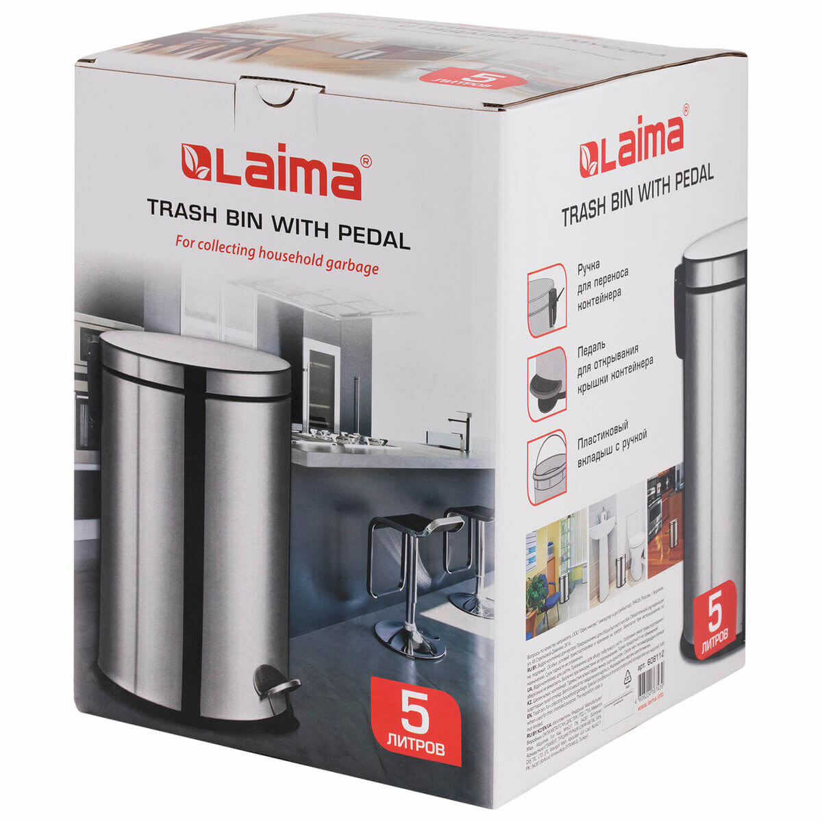 Ведро-контейнер для мусора урна с педалью LAIMA Classic Plus, 5 л, зеркальное