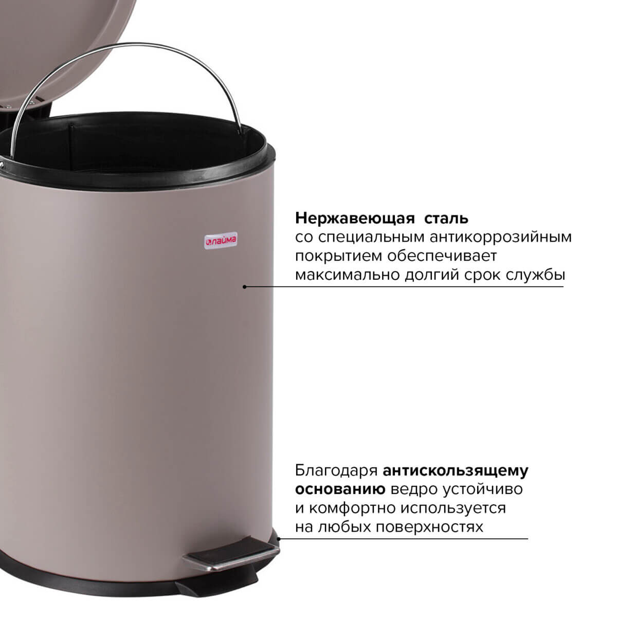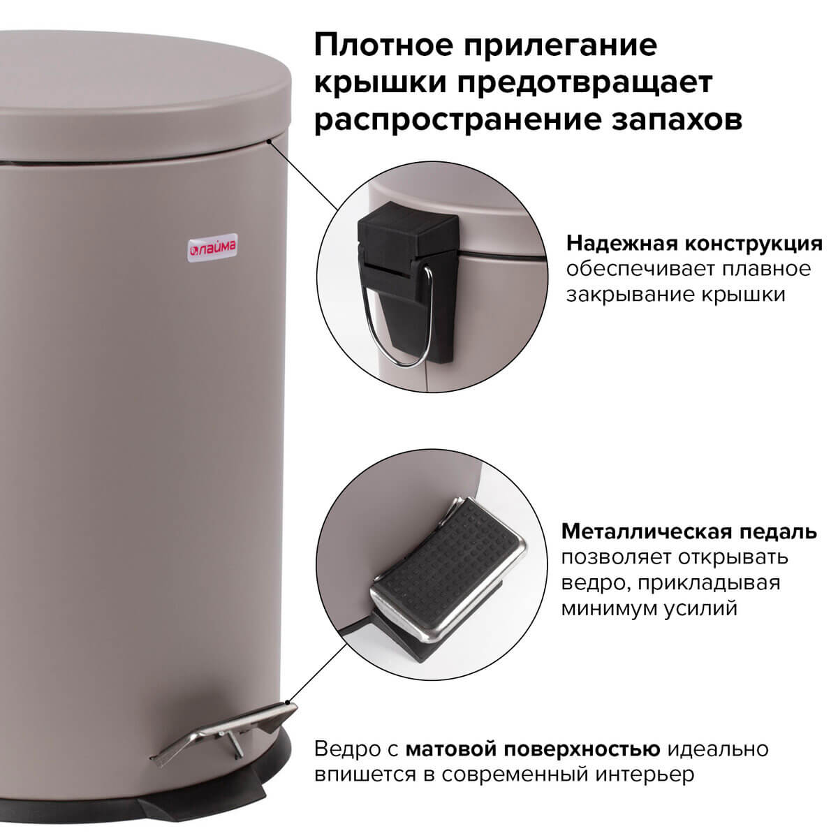 Ведро-контейнер для мусора (урна) с педалью LAIMA Classic, 20 л, серое, матовое, металл, со съемным внутренним ведром